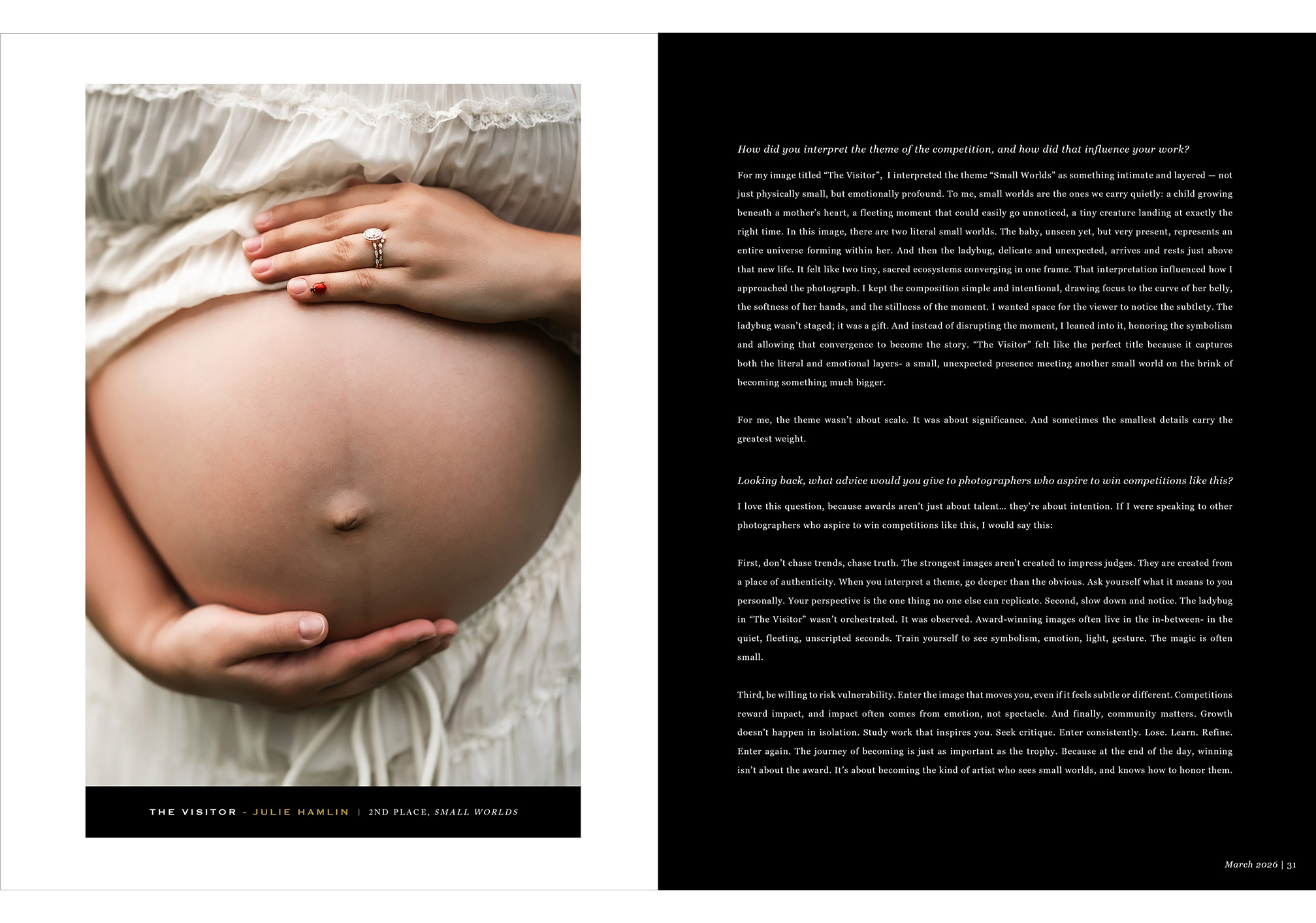 If you were featured in this issue, this moment deserves more than a quick scroll. As photographers, we spend your careers capturing meaningful milestones for everyone else—yet so often, our own achievements go undocumented. This is one of those milestones worth keeping. Years from now, you’ll be glad you ordered the issue that featured your work. Seeing your work in print is a powerful reminder of how far you’ve come, while giving you something tangible to share with clients, display in your studio, and keep as part of your brand story. Don’t let this accomplishment live only on a screen. Order your copy of the magazine and celebrate your feature in a way that lasts. These issues also make a meaningful gift for the clients who supported your journey or who are featured in your images—something they’ll treasure for years to come.